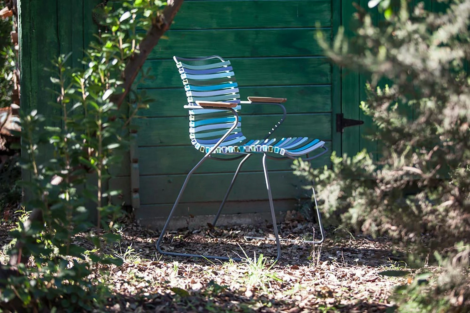 Das Essen im Freien Stuhl von Houe ist Teil der Click-Serie, die von Henrik Pedersen entworfen. Der bequeme Stuhl hat ein ergonomisches Design, das ist sehr gut durchdacht. Klicken Sie sind mit einem Rahmen aus pulverbeschichtetem grauem Metall, ein Sitz aus Kunststofflamellen und zwei Armlehnen in Bambus. Erhältlich in 14 verschiedenen Farben.