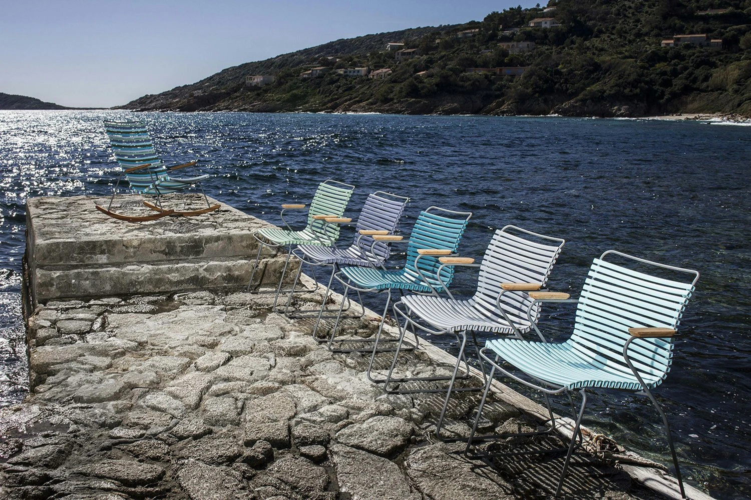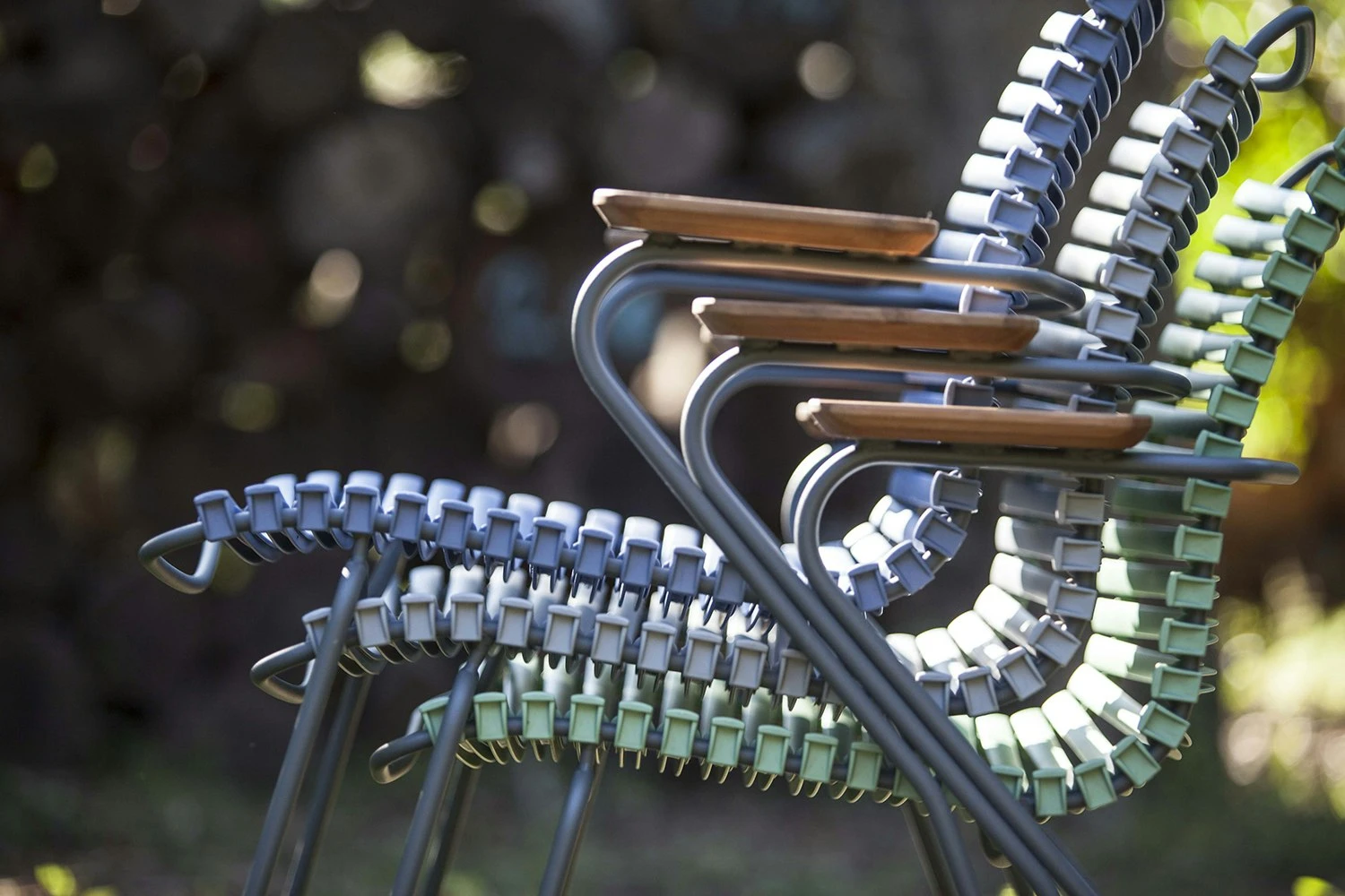 Das Essen im Freien Stuhl von Houe ist Teil der Click-Serie, die von Henrik Pedersen entworfen. Der bequeme Stuhl hat ein ergonomisches Design, das ist sehr gut durchdacht. Klicken Sie sind mit einem Rahmen aus pulverbeschichtetem grauem Metall, ein Sitz aus Kunststofflamellen und zwei Armlehnen in Bambus. Erhältlich in 14 verschiedenen Farben.