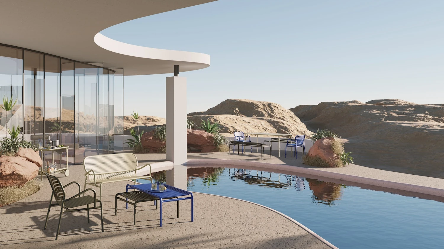 Week-End Kaffeetisch / Bank 51×127 Cm, Blau